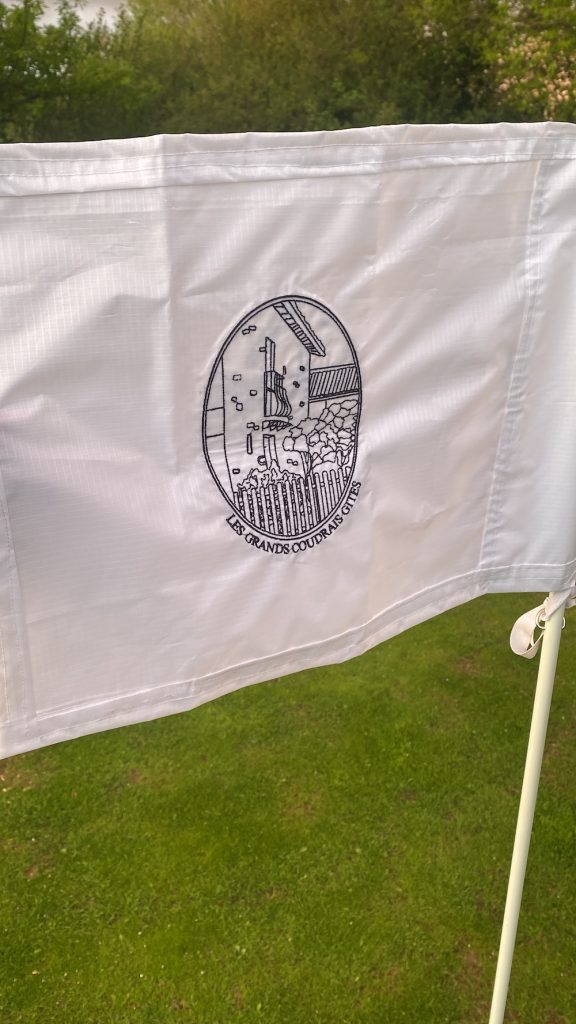Hole 1 – Le Jardin Potager ( the vegetable patch), named after the location of the tee box it’s a 80 yard shot to the green, in the summer when the meadow grows it’s a real test